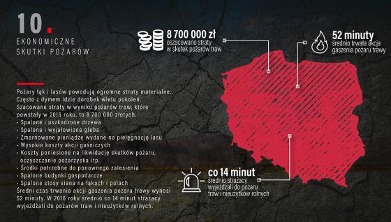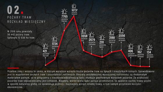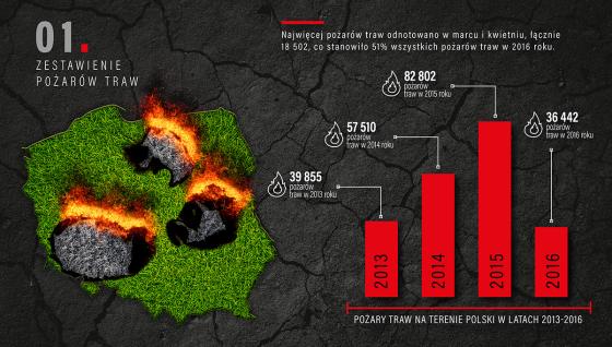 W roku 2016 na terenie województwa podlaskiego doszło do 348 pożarów traw i nieużytków, w których spłonęło w sumie 151 hektarów.