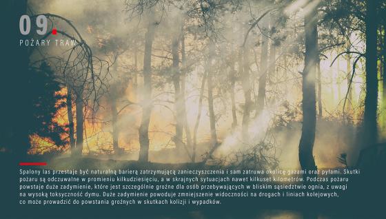 Zagrażają lasom, domom mieszkalnym i zabudowaniom gospodarczym, bezpowrotnie niszczą faunę i florę. Stwarzają też niebezpieczeństwo dla podróżujących, gdyż dym znacznie ogranicza widoczność, co może doprowadzić do groźnych wypadków i kolizji. Angażują również wiele zastępów ratowniczych, których pomoc może być potrzebna w tym samym czasie w innym miejscu, gdzie naprawdę zagrożone jest życie i zdrowie ludzi.