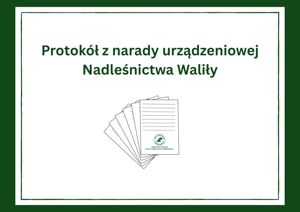 Informujemy, że na stronie BIP Regionalnej Dyrekcji Lasów Państwowych w Białymstoku opublikowano protokół z narady urządzeniowej Nadleśnictwa Waliły z dnia 06.02.2026 r. Dokument ten określa założenia do projektu planu urządzenia lasu na lata 2028–2037.