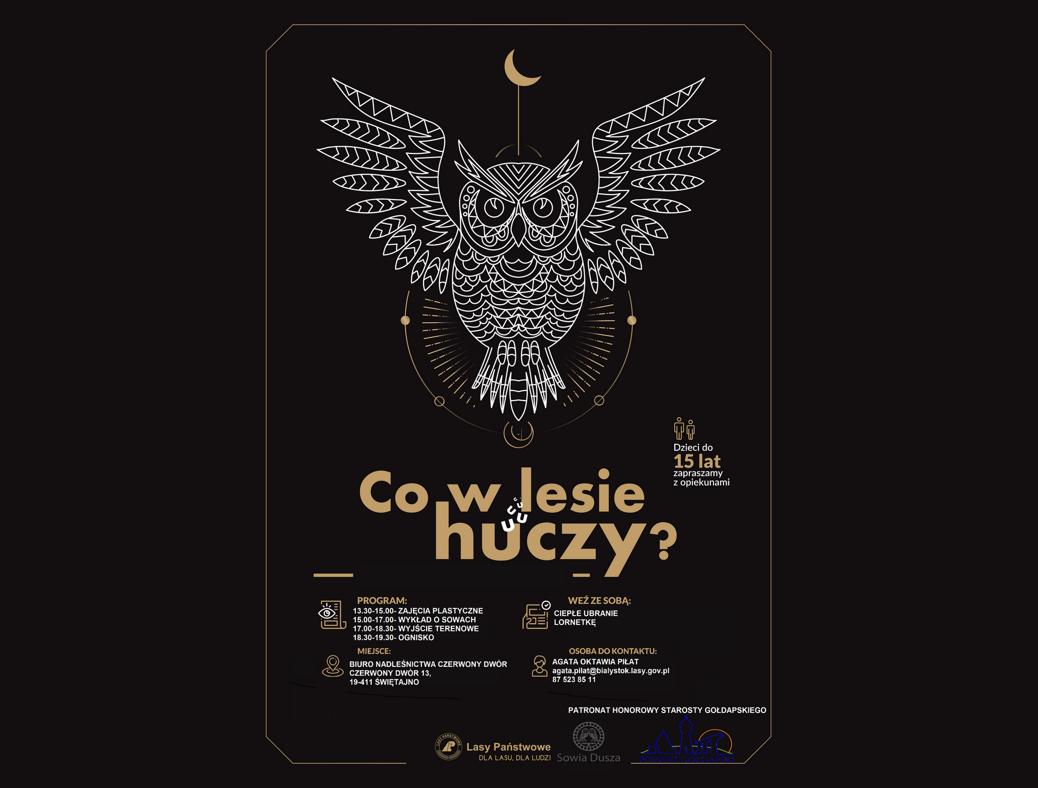 To pierwsza edycja "Co w lesie huczy?", którą organizujemy, ale nie pierwsza impreza dotycząca sów. Wydarzenie to będzie poświęcone tym tajemniczym ptakom, ale nie zabraknie też wiedzy o przyrodzie, która otacza nas na co dzień. Śladem lat ubiegłych odbędą się warsztaty plastyczne, spacer po lesie oraz ognisko.