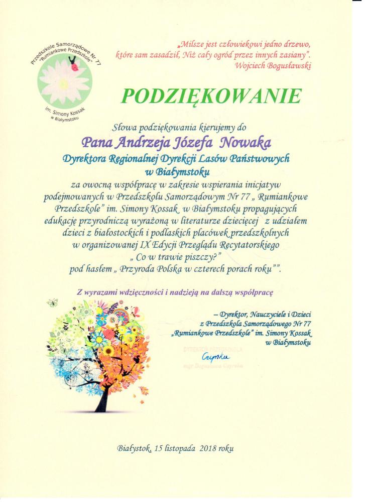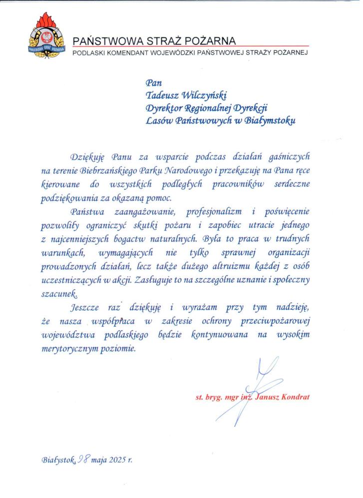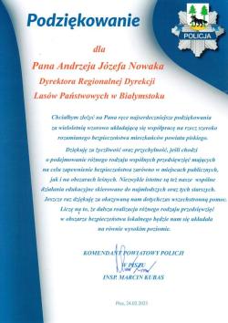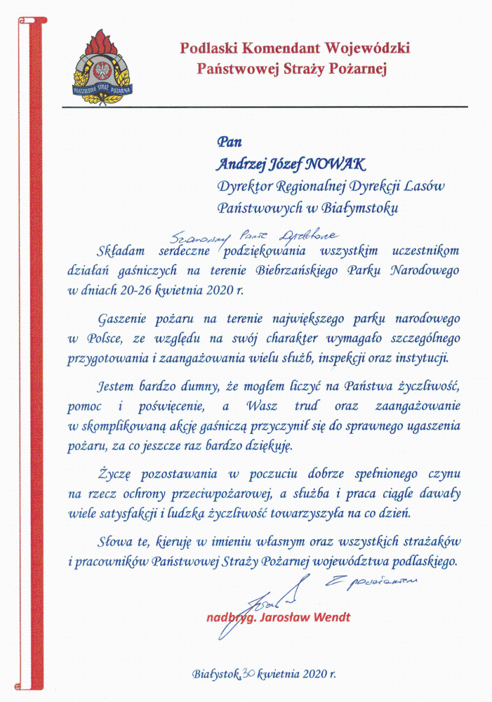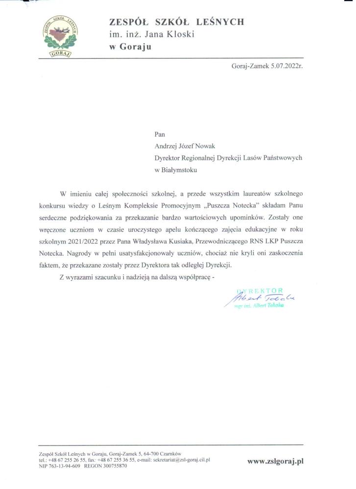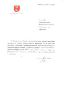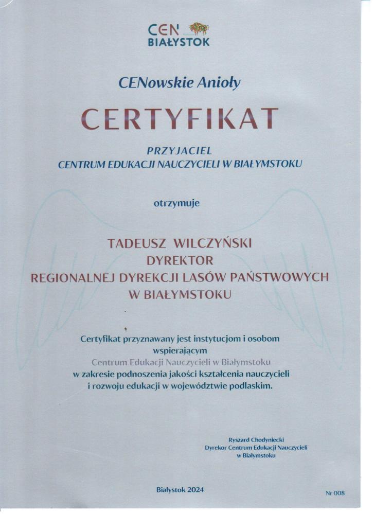 Szanowny Panie Andrzeju Nowak! Składam serdeczne życzenia Panu i zespołowi Regionalnej Dyrekcji Lasów Państwowych w Białymstoku z okazji 100-lecia Niepodległości Polski. Dobrze wiemy, że narodowe święto- Dzień Niepodległości Polski jest szczególnie ważny dla Waszego kraju. Wiemy jak ważny jest on dla Waszej narodowej tożsamości. Jesteśmy szczęśliwi, że dzisiaj Polska to wolny i niepodległy kraj. Dla wielu pokoleń Polaków było to nieosiągalne marzenie. Bardzo duże znaczenie ma dla nas dalsze umacnianie przyjacielskich i partnerskich relacji z Waszą organizacją na wszystkich szczeblach współpracy. Chcę zapewnić, że przyjazne i pełne wzajemnego szacunku stosunki, jakie nawiązaliśmy, posłużą za mocną podstawę dla rozszerzenia polsko-białoruskiej współpracy w duchu konstruktywnego partnerstwa, dla dobra gospodarki leśnej naszych krajów. Jestem przekonany, że również i w przyszłości będziemy prawdziwymi przyjaciółmi i niezawodnymi partnerami, zawsze gotowymi do wzajemnej pomocy.